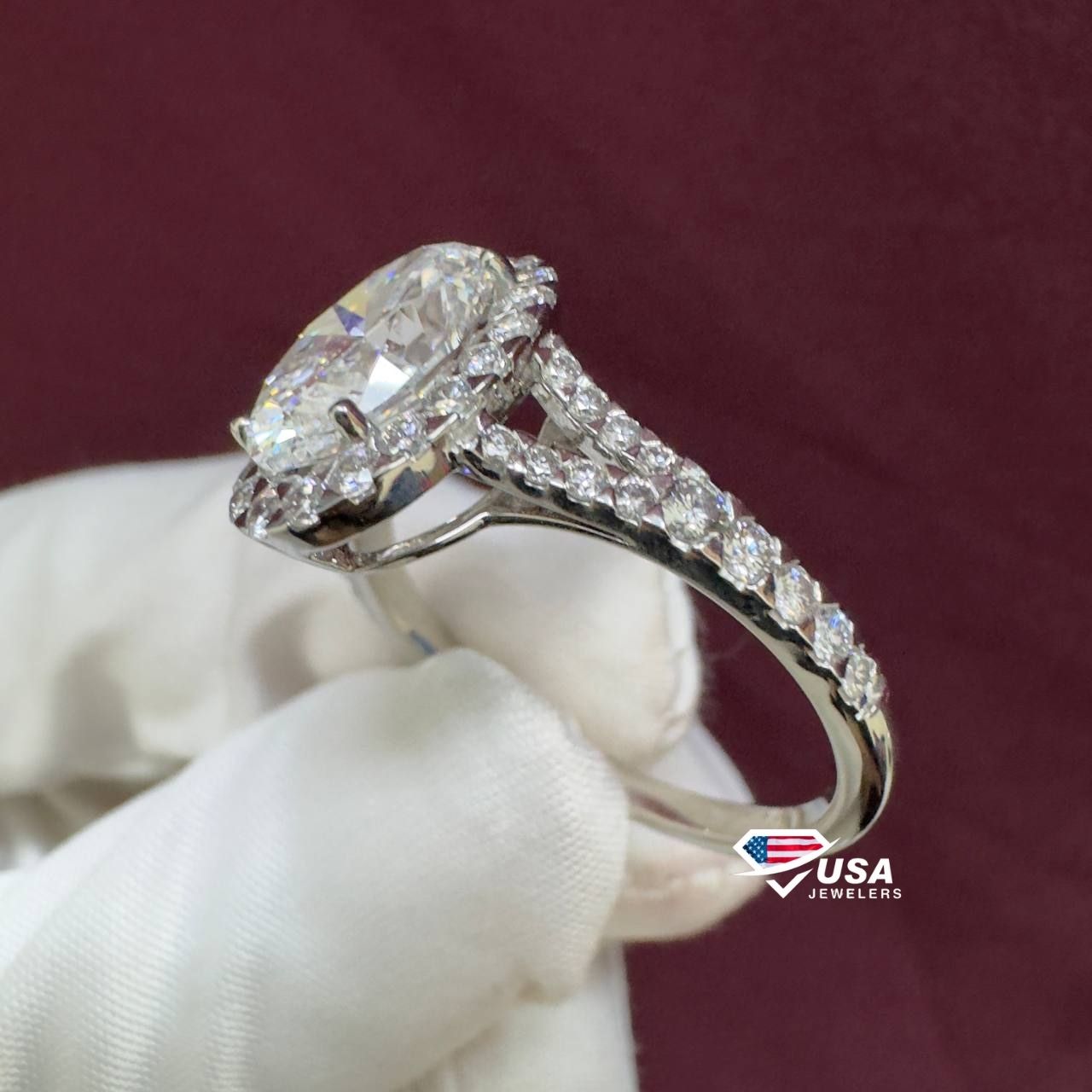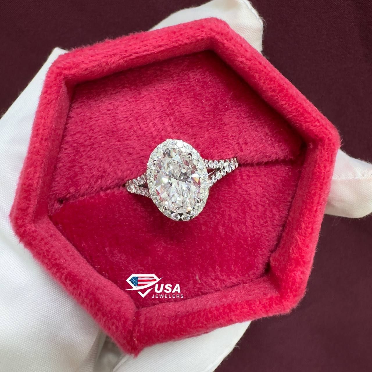 3.0CT E VS1 Lab Diamond halo Oval Cut Engagement Ring