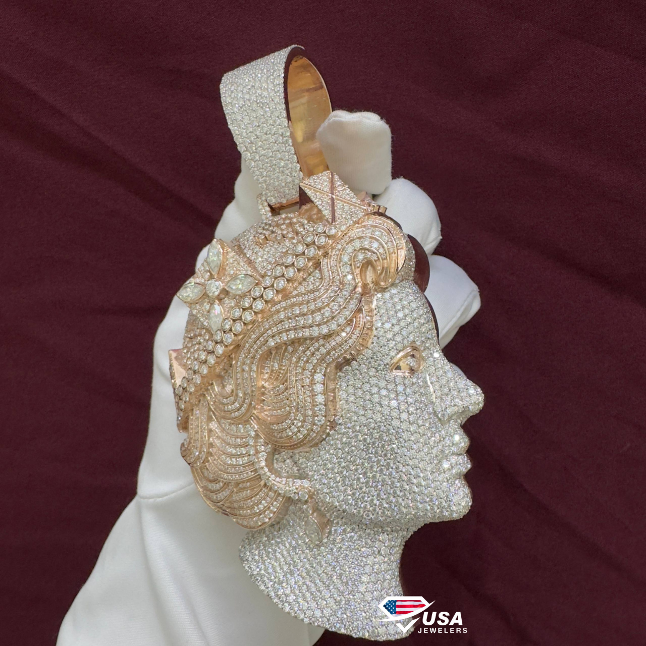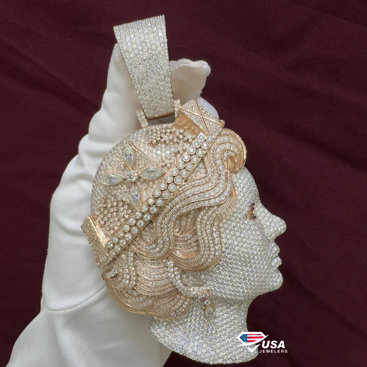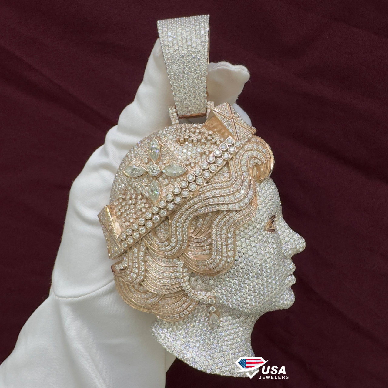 VVS Moissanite Diamond Queen Elizabeth Pendant , 3D 14Kt Rose Gold wedding Gift